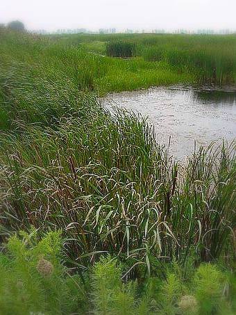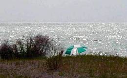 One side of the ever changing Long Point sand spit is marshy and the other is sand beach.