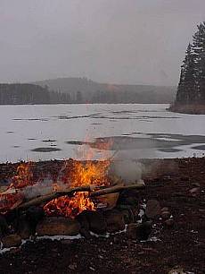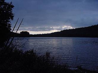 The short days, with the sun never rising very high into the sky, provided remarkable sunsets and dusks over the lake. | |