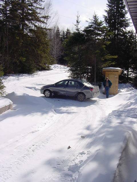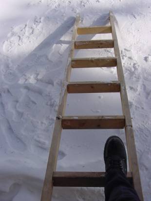 When it 30 below zero, and you have to visit the outhouse, it's that first step down the icy ladder that creates more anxiety than the expectation of dropping your pants in an unheated box over a hole in the ground. Here's another view of those steps from hell!
