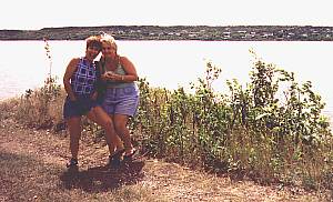 | Marsha & Janet in one of the windblown river valley ecosystems that run like cracks across the prairie landscape, where lakes, cottages, and vegetable farms huddle. |