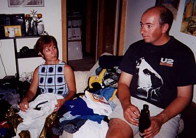 Filling the living room with our luggage, which had grown significantly since the beginning of the trip. |